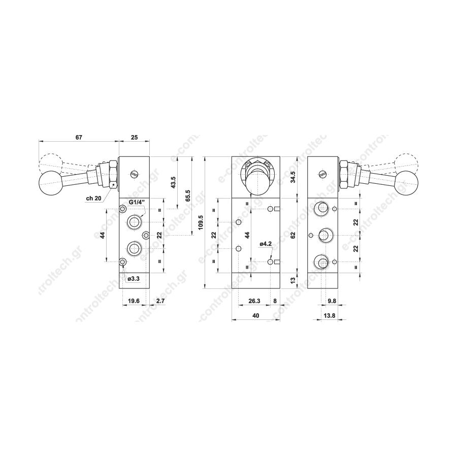 Βαλβίδα Αέρος Πλάγιου Μοχλού 1/4'' 5οδη 2 Θέσεων 522LL90 az
