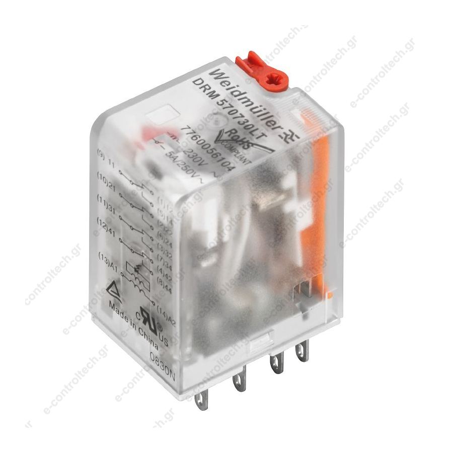 Μικρορελέ Λυχνίας 2CO 10A 115VAC μεσαίου τύπου με test και ένδειξη DRM270615LT 7760056075 Weidmuller.