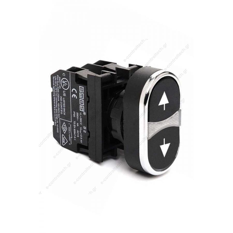 Μπουτόν Φ22 Διπλό με Μαύρα Βέλη και Λυχνία 2NO B101K20HHOK EMAS.